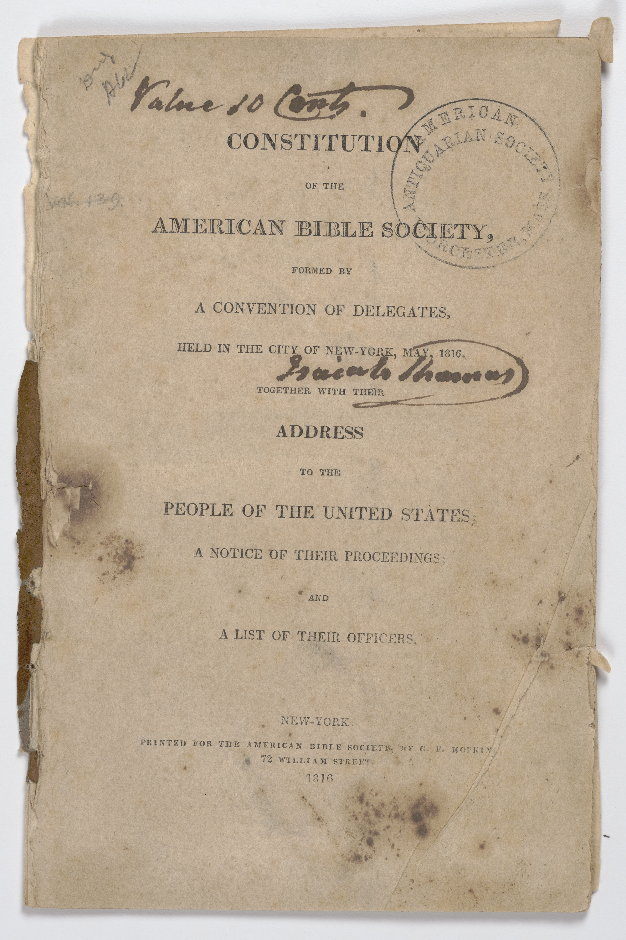 Constitution of the American Bible Society : formed by a convention of delegates, held in the city of New York, May, 1816 : together with their Address to the people of the United States : a notice of their proceedings : and a list of their officers