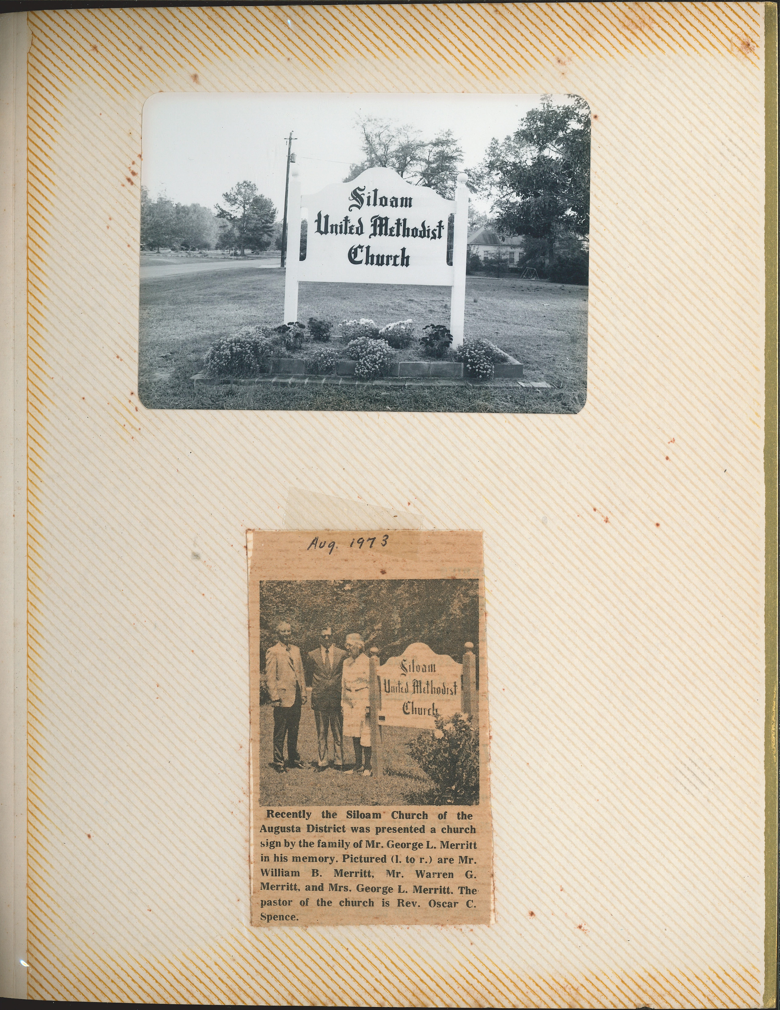 A scrapbook from the Siloam United Methodist Church including photographs of events, members, decorations, and the construction of Fellowship Hall. Also included are yearly activity reports from the early to mid 1980s and several brief church histories.