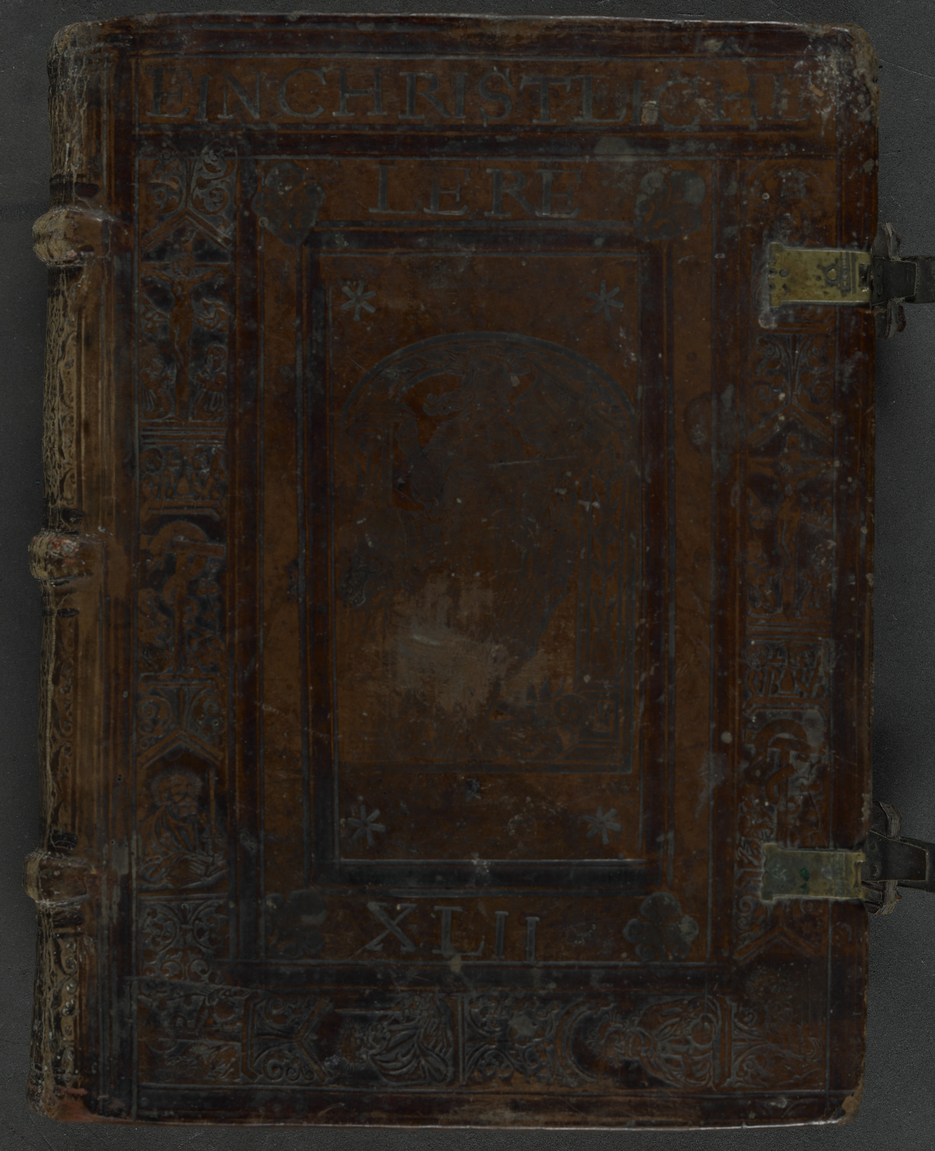 Summary: Defense of the Catholic doctrine of good works against the Protestant teaching of salvation by faith alone, written by the Dominican Johann Mensing.Signatures: A-2O⁴. Leaf A3 missigned A2, leaf 2D3 missigned 2D, leaf 2F3 missigned 2F2. Leaf XXII misnumbered XXIII, leaf LXXXVII misnumbered LXXXVIII. Last p. blank.Binding: Bound in panel-stamped, blind-tooled, dark brown calf over wooden boards, with brass clasps.Imprint: from VD16. Date of printing from colophon. Colophon: Volendet Anno 1535. Vicesima Ianuarij. Soli Deo honor et gloria--Leaf 143b.Additional Details: Errata on leaf CXLIIII at end. Old ms. notes.