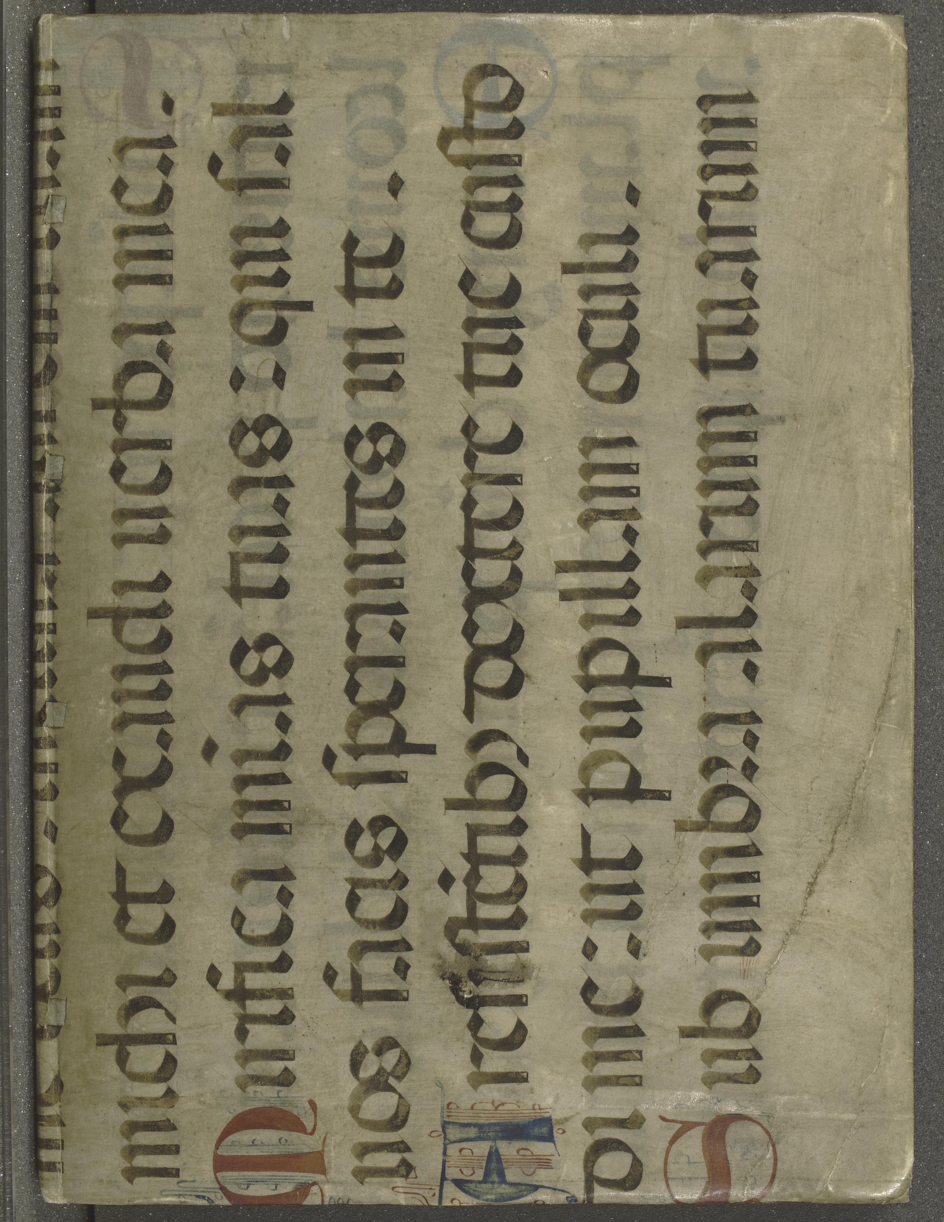 Summary: Reuchlin had visited Rome in 1490, where he was introduced to Rabbinic literature as well as the cabala.Signatures: A⁴ B-N⁶ O⁸. Leaves XXII, XLIIII, XLV, XLIX, L, and LI misnumbered XXI, XLIII, XLIIII, L, LI, and LII respectively.Imprint: from colophon.Illustrative and Decorative Content: Title vignette depicting the arms of Johann Reuchlin.Binding: Early vellum manuscript page with colored initials for binding.