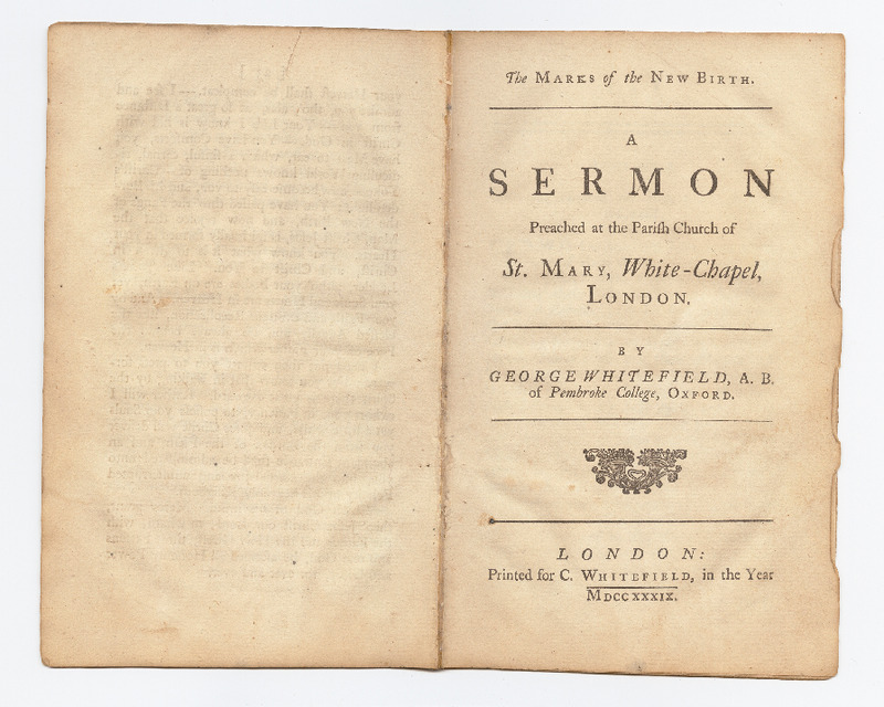 Following a short stay in Georgia, Whitefield returned to England to be ordained a priest and to raise funds for the establishment of an orphanage for needy children in Georgia. This is another farewell sermon, this time ahead of his second voyage to America, preached in Moorfields, London, where he had attracted large crowds as a charismatic revival preacher. In this strident evangelical sermon, Whitefield tells his hearers that they “cannot of themselves do any Thing acceptable to God” and salvation is “thro’ the unmerited Grace and Righteousness of our Lord Jesus Christ” alone. Whitefield’s audience is exhorted to believe in Christ like the Publican whom Jesus declared to be justified in Luke 18:14. Illustrating the evangelical emphasis on the atonement, Whitefield tells his listeners to “bathe yourselves in the Blood of our Lord Jesus Christ.” Another common evangelical theme present here is the conviction that true Christians will likely suffer for their faith and perhaps even be “laughed at and accounted methodically mad.” Whitefield notes that because of his impending transatlantic voyage, they may not see him again until judgement day, but they should nonetheless pray that God might grant that he returns to them. In turn, Whitefield will not forget them: “And when I am in the Midst of the Waves of the Sea, then shall my Prayer be, That you may all be found at the Right-Hand of the Son of God, and that you may increase with all the Increase of God.”
