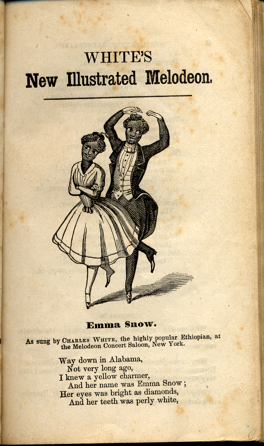 White's new illustrated melodeon song book: containing a variety of all the new and most popular songs, jokes, conundrums, burlesque lectures, etc, embracing the choicest collection as sung by White's band of serenaders, the Christys, Campbells, and Sable Brothers